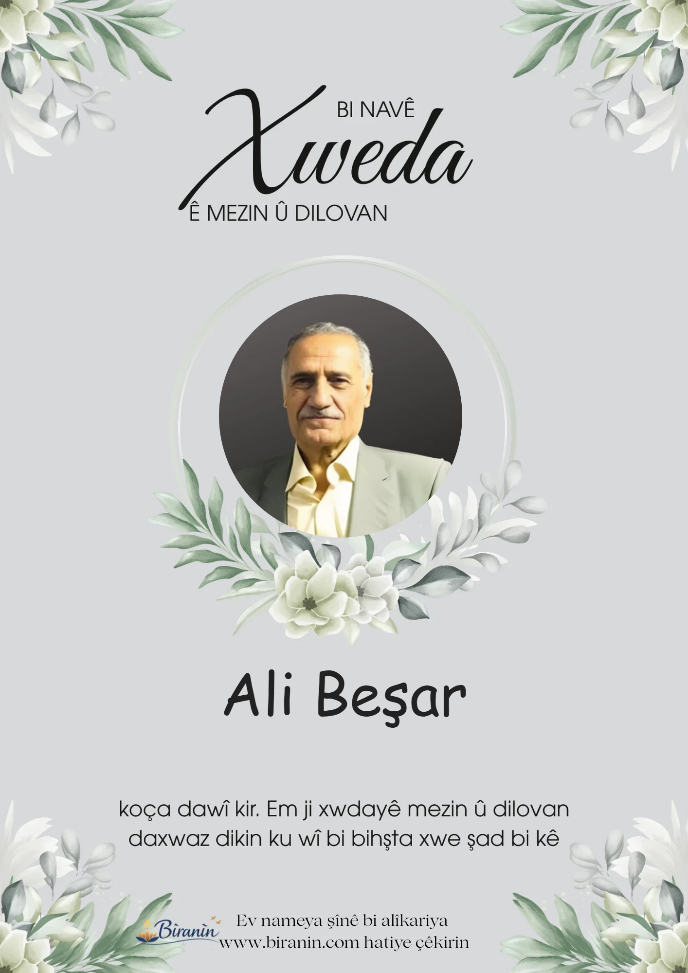 Bi dilekî pir xemgîn û bi êşeke mezin, me mîna mirina Ali Beşar bihîst.