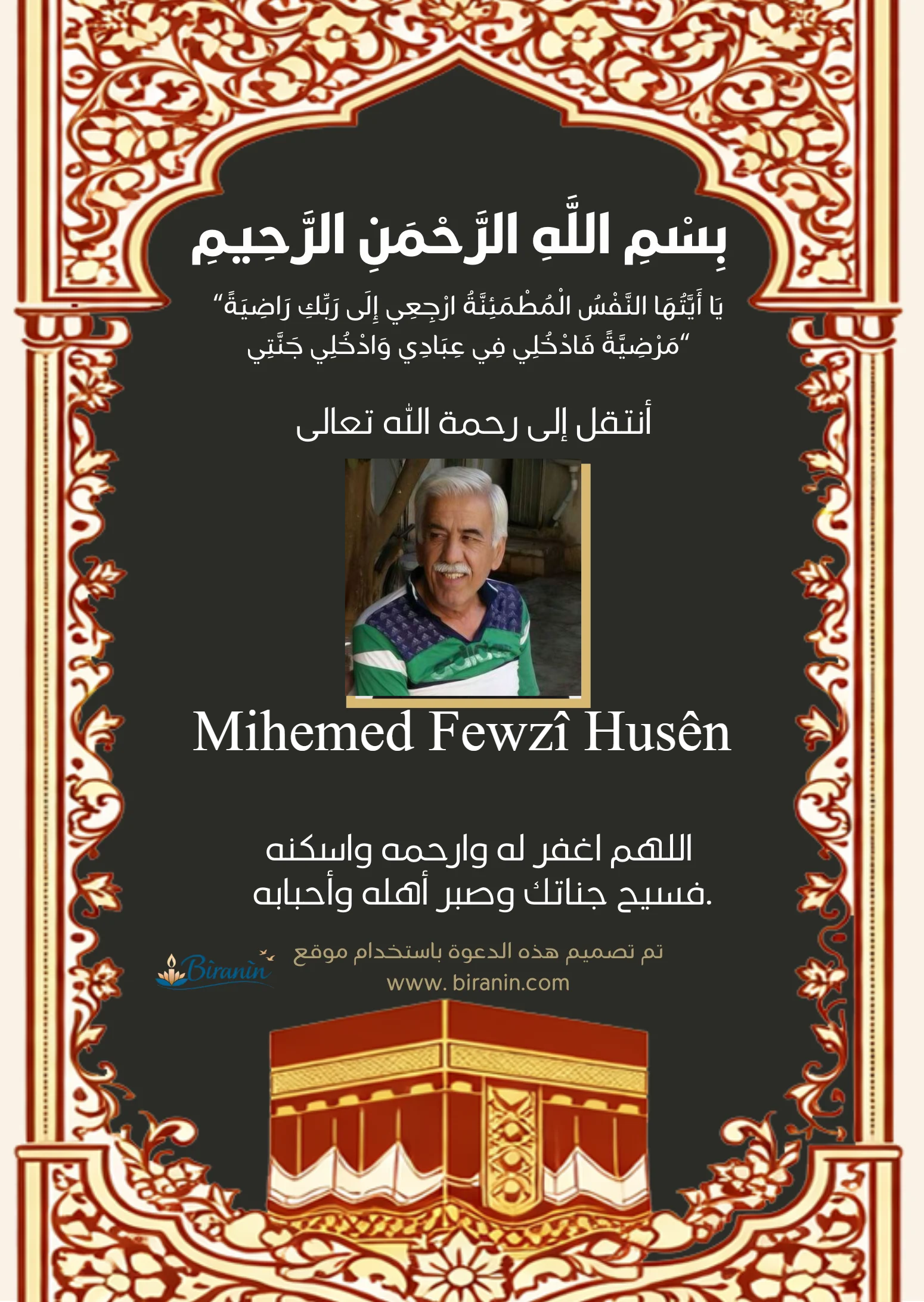 Bi dilekî pir xemgîn û bi êşeke mezin, me mîna mirina Mihemed Fewzî Husên bihîst.