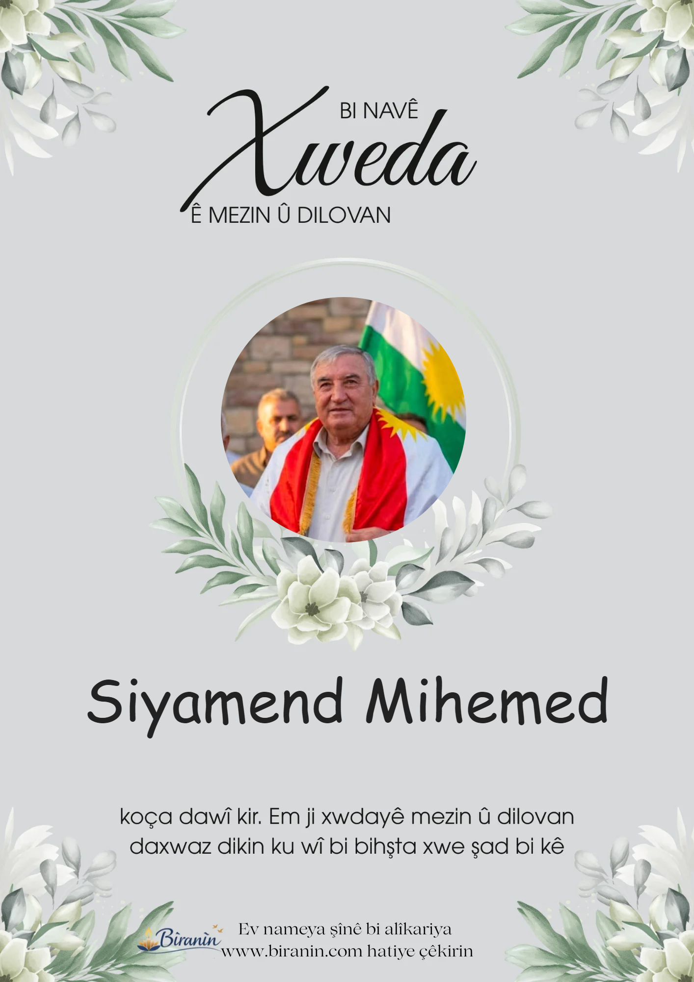 Bi dilekî pir xemgîn û bi êşeke mezin, me mîna mirina Siyamend Mihemed